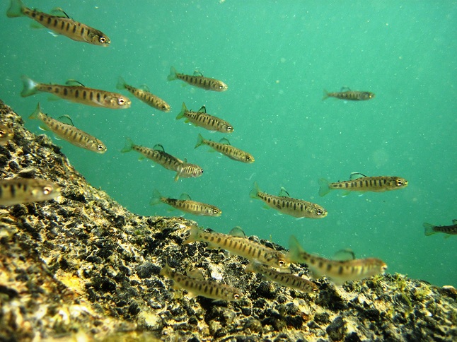 Baby steelhead feeding in the pool right at the North Umpqua Retreat!
